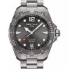 Dette ur har en rund urkasse med en glat bezel, der giver et klassisk dykkerudseende. Urskiven er detaljeret med fremtrædende timemarkører og en klar visning, der sikrer læsbarhed. Titaniumremmen giver en sikker og komfortabel pasform, mens den grå urskive og bezel harmonerer med den sølvfarvede urkasse og rem for et sammenhængende look. Den robuste krone er designet til nem justering, og safirglas giver enestående ridsemodstand. Med en diameter på 43 mm gør dette ur et stærkt indtryk på håndleddet, ideelt til både dykkeroplevelser og hverdagsbrug.