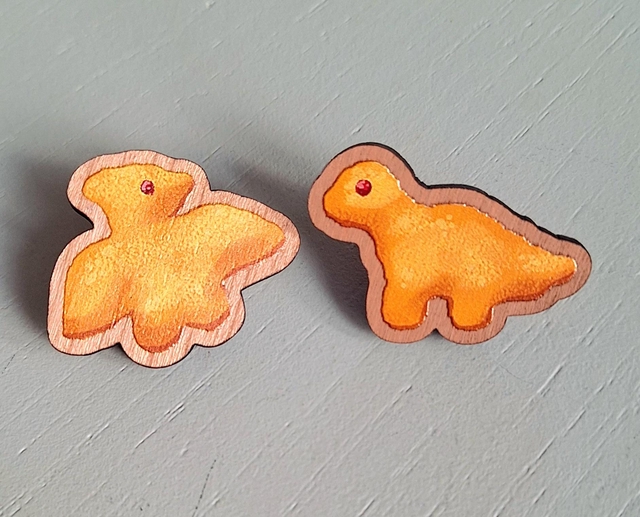 arrow_backTil oversigtenDisse Dino Nugget wooden pins er lavet på kirsebærtræ og føles lækre at røre ved.