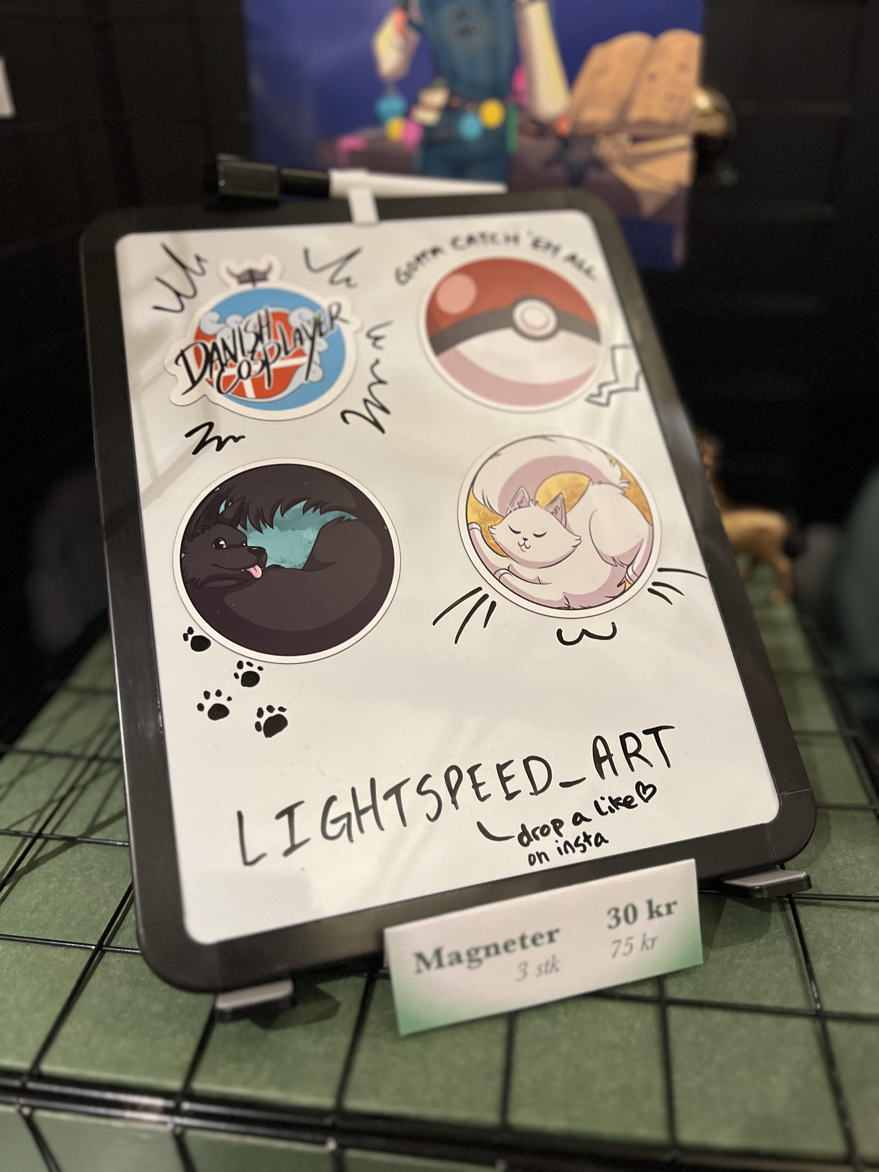 LightSpeedArt arbejder i mange forskellige medier. Der bliver både lavet klistermærker, køleskabs magneter, nøgleringe og bord skånere. Derudover bliver der også arbejdet med stof, hvor der pt bliver produceret små poser til smykker, terninger eller hvad ellers man kan finde på at putte i. Der bliver også lavet lidt større tasker der er tiltænkt terninger, til den smarte dicegoblin, som gerne vil have mulighed for at have både opbevaring, dicetray og en flot skuldertaske i en.