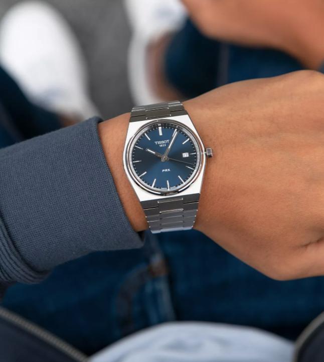 Denne moderne udgave af PRX bevarer essensen af sin forgænger, mens den inkorporerer moderne elementer. Den har en 40 mm diameter urkasse, der giver en afbalanceret tilstedeværelse på håndleddet. Uret er udstyret med et pålideligt schweizisk ETA F06.115 kvarts urværk, kendt for sin nøjagtighed. Den blå urskive er minimalistisk og ren med en datovisning klokken 3, der tilbyder både stil og funktionalitet. Den integrerede stållænke forbedrer urets sammenhængende design, mens butterfly låsen sikrer en sikker bæring.